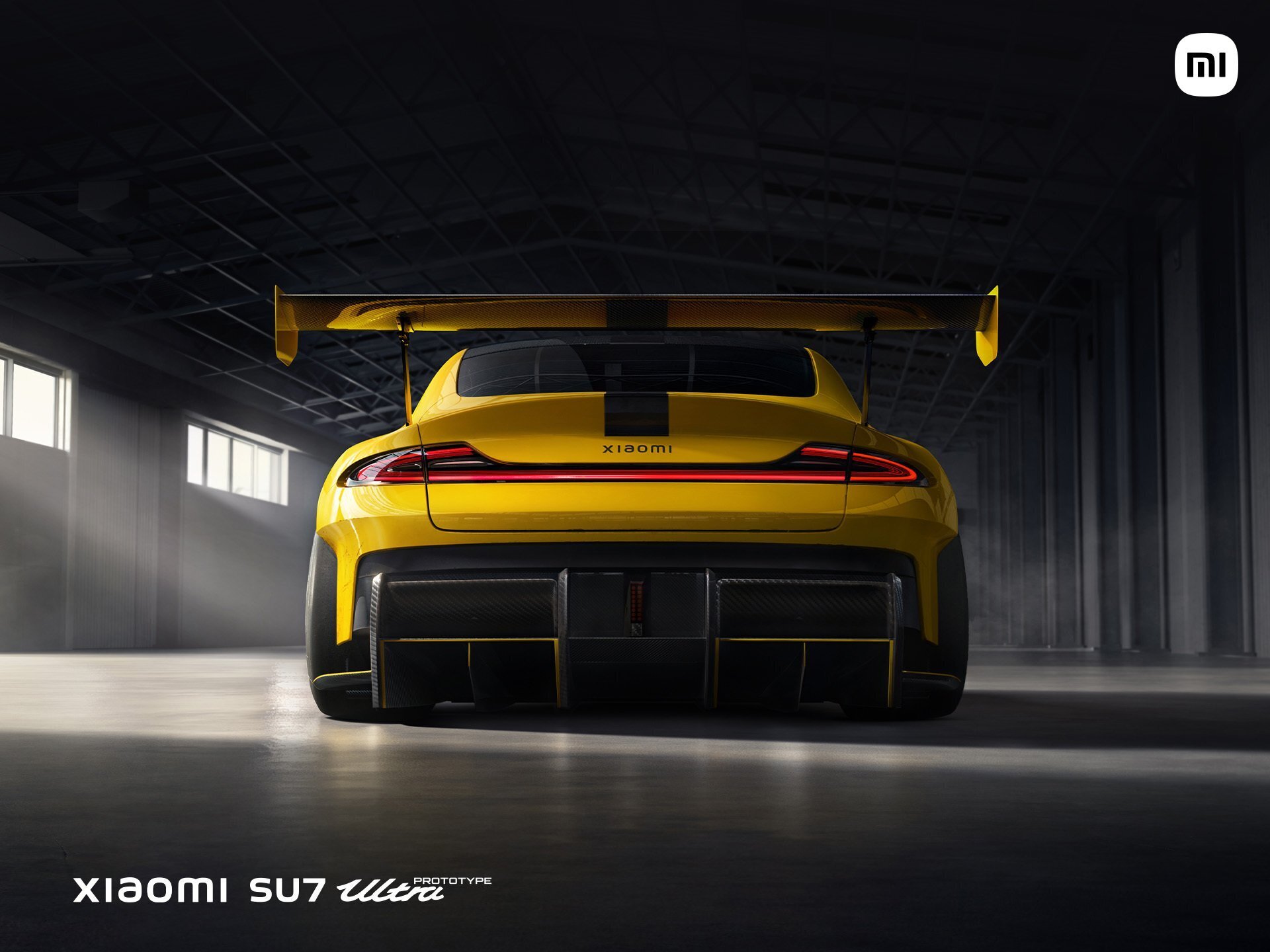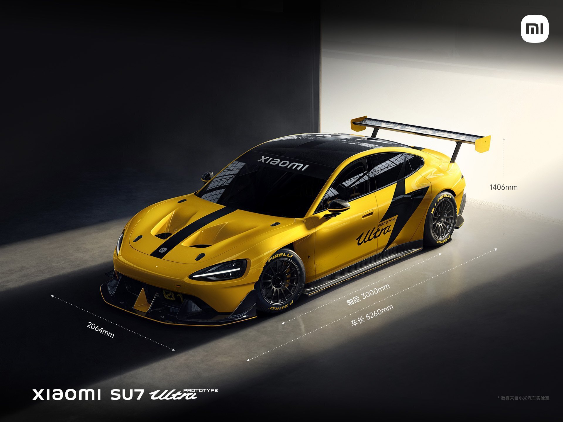 #小米SU7Ultra# 原型车, 基于小米SU7打造,为赛道全面进化, 更长、更宽、更低趴,独特的闪电黄搭配闪电拉花; 侧面风刀、超大尾翼设计……每一处都彰显赛道精神, 它无比纯粹,为性能、为赛道而生!
