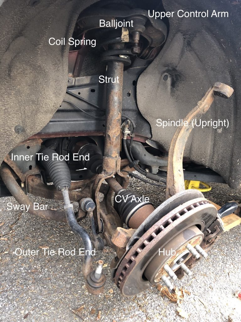冲击扳手非常方便,可以拆卸拉杆端和球头的螺母。如果你的手动拆卸球头螺母时,由于没有合适的平面来放置扳手进行反向支撑,这可能会很难。我通过组合使用转向角度和咒骂将轴从轮毂中滑出。由于只能压缩或下压一定距离,这有点棘手。