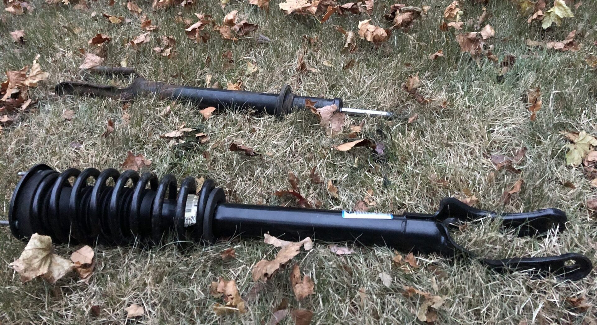 旧的已经出去了,所以是时候把新的放进去。我没有更换弹簧,所以我只需将它们从旧的减震器上换到新的减震器上。这意味着不得不压缩弹簧。[编辑注:快速减震器的美妙之处在于它们已经组装好了!——DT]我用后院草地上的一系列手动夹壳和单独的钩子和螺丝压缩器组合来完成这项工作,真的很难。