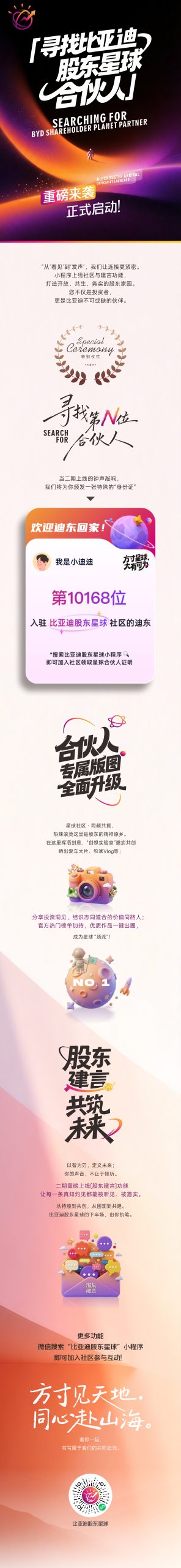 比亚迪汽车:比亚迪启动“寻找股东星球合伙人”计划,六大品牌及智慧生态正式安家星球