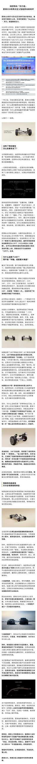 蔚来:蔚来线控转向引领智能新高度,ES9平流层驾乘体验受期待