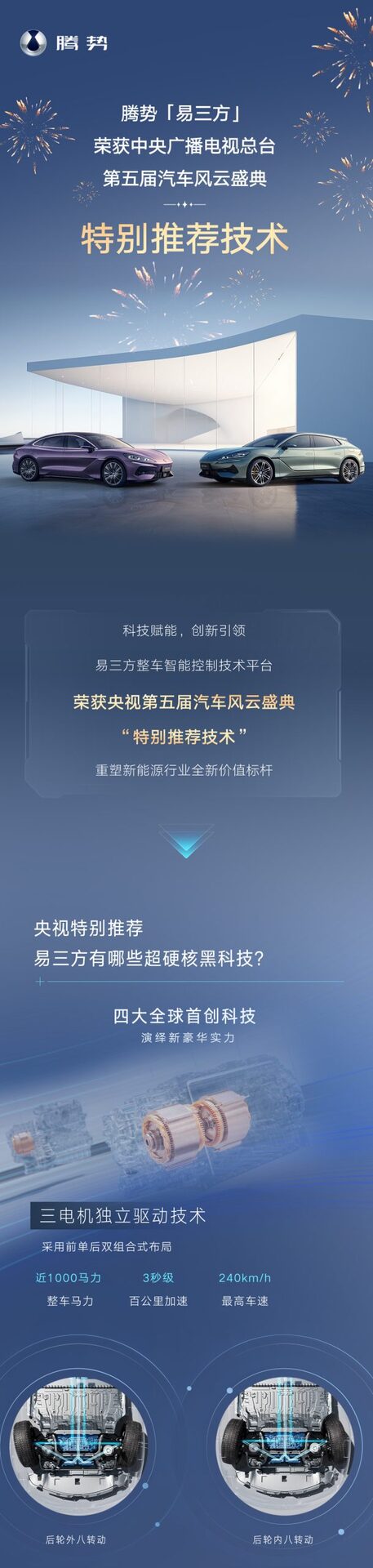 新年喜讯,央视权威认证!腾势#易三方#以全维领先科技创新实力荣获央视第五届汽车风云盛典“特别推荐技术”。科技豪华,领势向前,重新定义新能源豪华技术标杆!