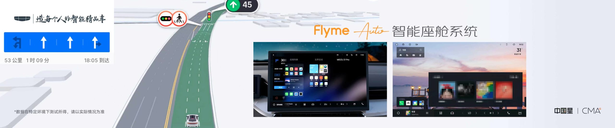 中国星全新东方曜系列 搭载行业最先进的GEEA3.0电子电气架构 实现整车全域FOTA的无感安装 同级独有的星睿AI大模型 打造全生命周期零焦虑的用车体验 智能座舱,推出Flyme Auto 交互更直接、逻辑更简单,操作更丝滑,沟通更高效 搭载“千里浩瀚辅助驾驶H3方案” 全面覆盖用户在智能辅助行车、智能辅助泊