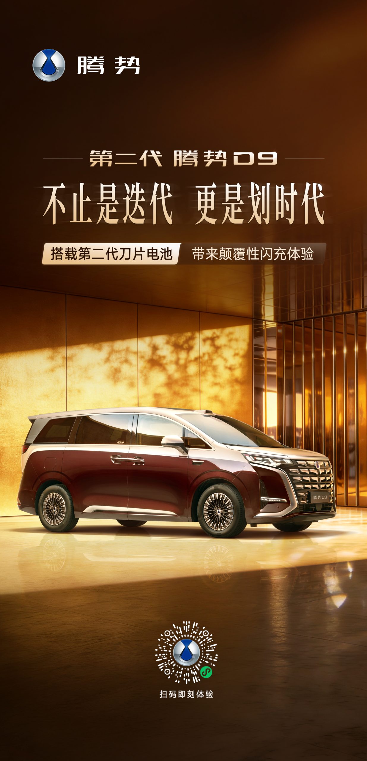 王者之上,再攀新巅! #第二代腾势D9来了# 搭载#比亚迪第二代刀片电池# 5分钟充好,9分钟充饱,零下30度只多3分钟! 让每一次出行自在从容