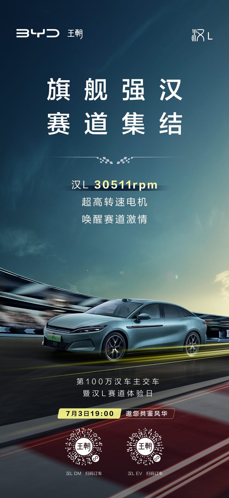 旗舰强汉,让标杆于时代中伫立 澎湃动力,让激情于赛场中张扬 第100万汉车主交车暨汉L赛道体验日 明日启幕,敬请期待! #年轻人的第一台旗舰轿车#