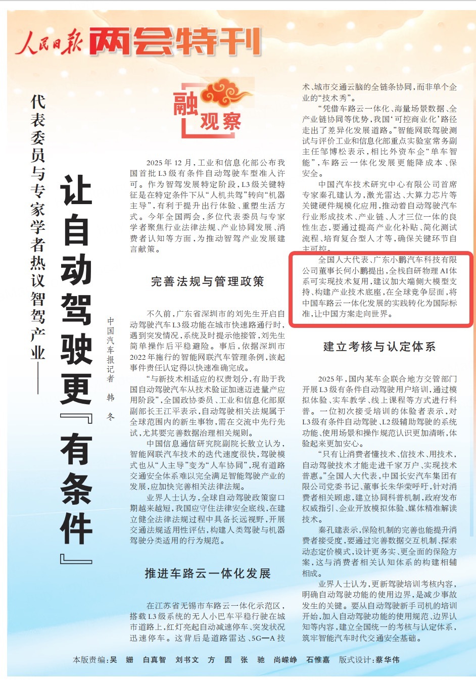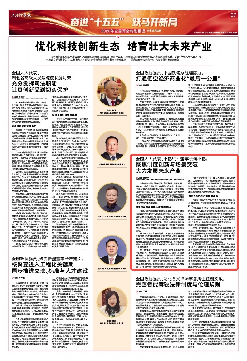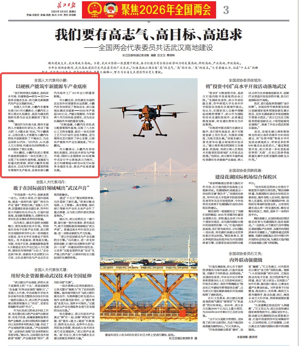 两会期间,全国人大代表 @XP-何小鹏 依法履行代表职责,在两会期间紧扣智能经济、物理AI、低空经济、具身智能等核心方向,提出多项聚焦科技领域与产业未来的建议,相关建言引发广泛关注与积极反响。