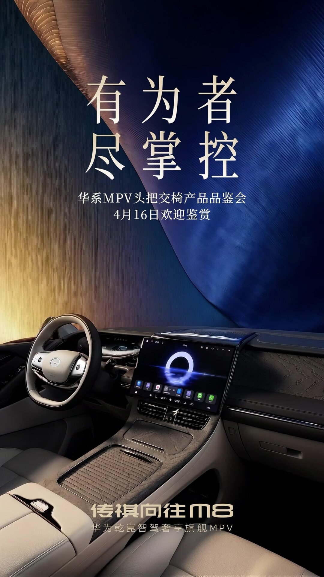 #传祺向往M8#,#华系MPV头把交椅# 全球领先鸿蒙座舱 有为者,尽掌控 4月16日品鉴盛启,诚邀共赏
