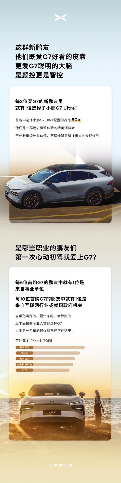 想知道为什么越来越多年轻人把#小鹏G7#当人生第一台车?👀 数据说了算——