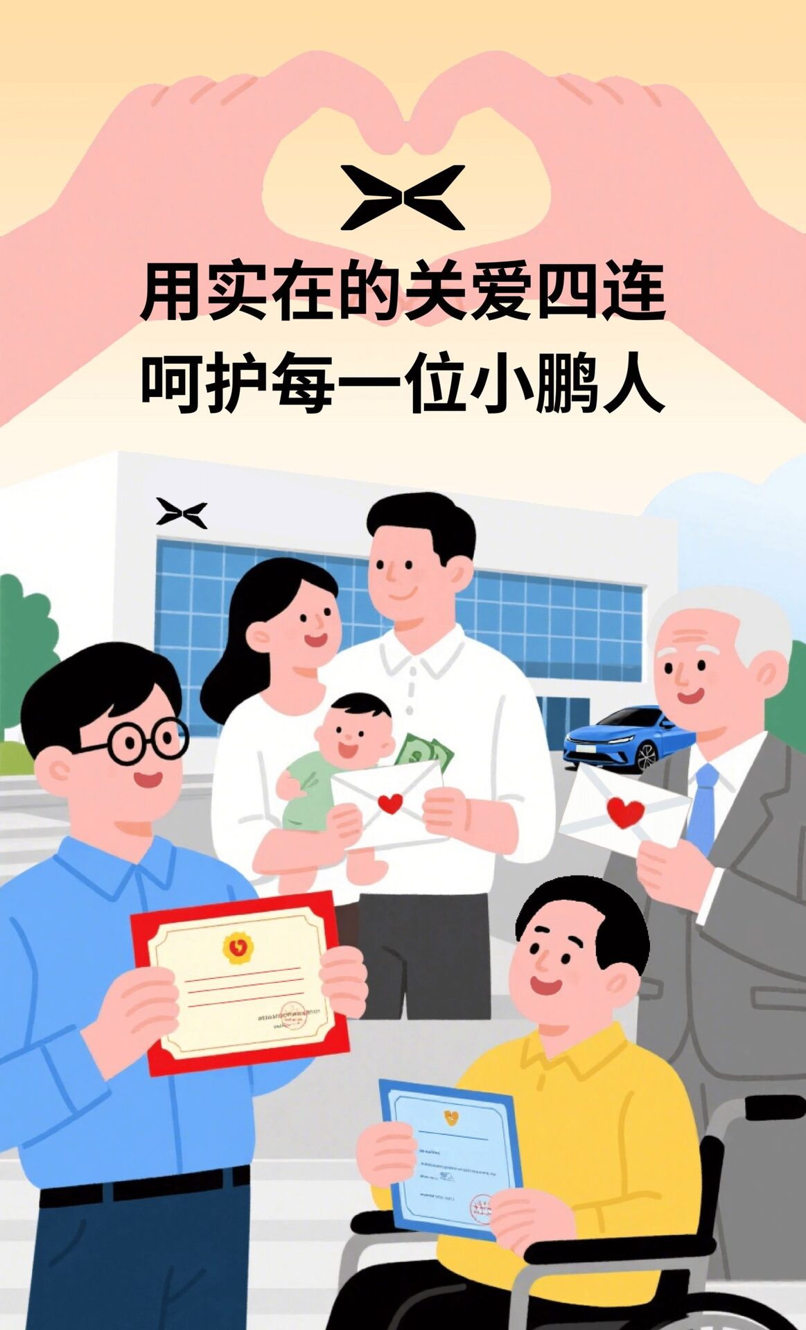用实在的关爱四连,呵护每一位小鹏人~