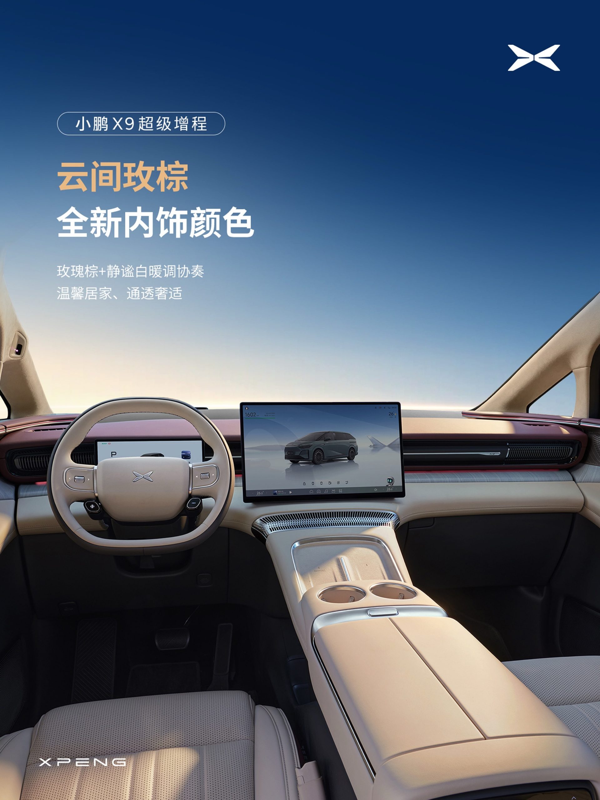 ☁️小鹏X9超级增程内饰全面焕新,有质感更有高级感。