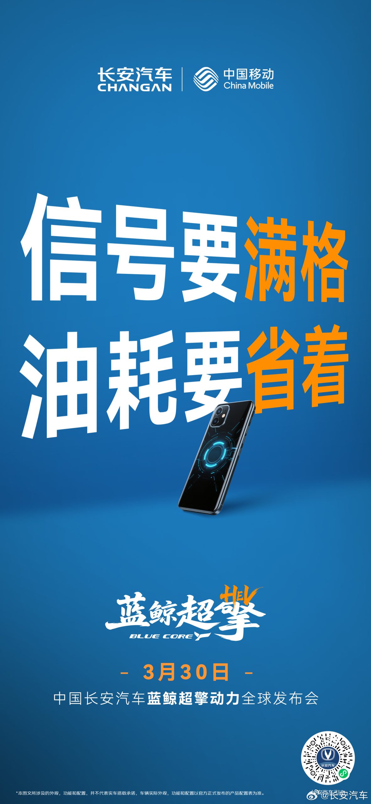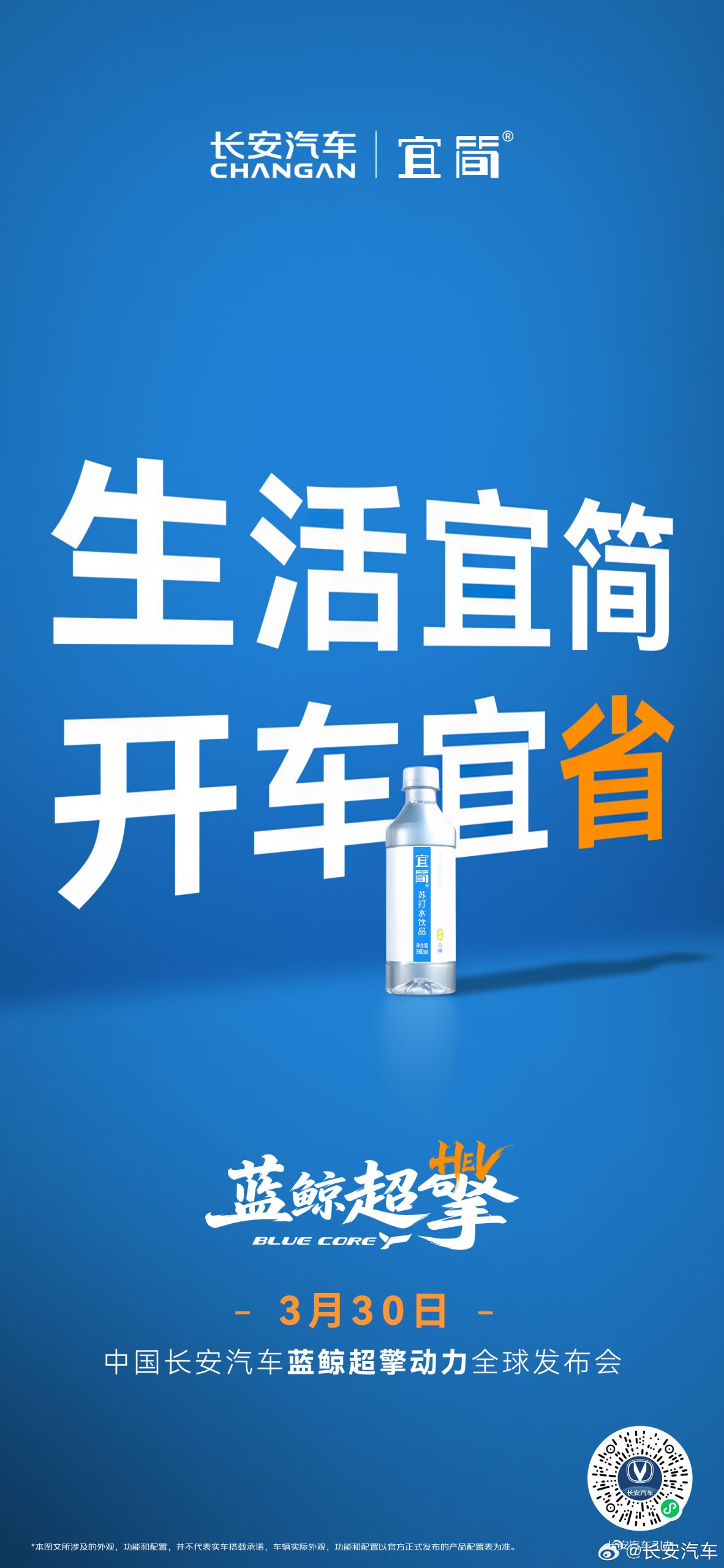 省信号、省路程、省开销、省精力!与@OPPLE欧普照明 @全友家居 @T3出行@途牛旅游网 @宜简苏打水 @中国移动手机俱乐部 共赴节能之约,解锁出行“省”新体验~3月30日19:30,中国长安汽车蓝鲸超擎动力全球发布会重磅启幕,蓝鲸超擎混动登场,省就对了!