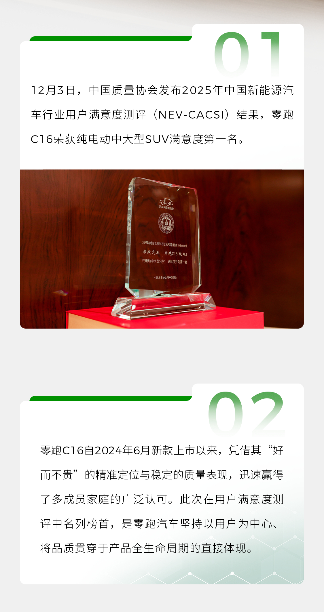 🏆#零跑C16#荣获中国质量协会2025年纯电动中大型SUV满意度第一!