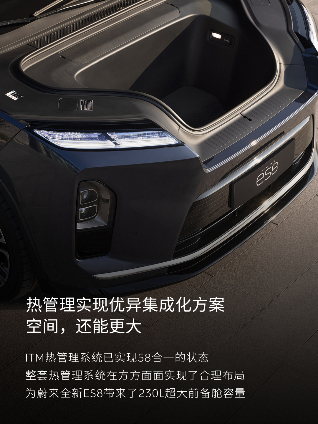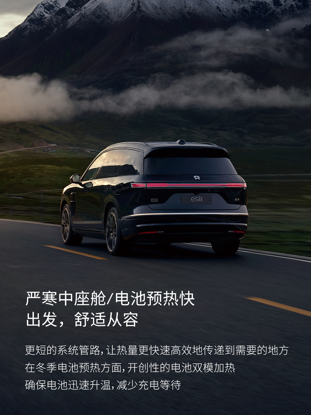 冬季出行,如何面对严寒挑战?全新ES8以精准的热管理系统,不仅让座舱和电池预热更快,还能对热量进行精准的分配,实现高效节能。热管理系统高度集成化设计,不仅带来230L超大前备舱,更以双份冗余设计方案,确保系统在极端气候下也能稳定运行。全新ES8直面严寒挑战,带来全场景舒适感受。
