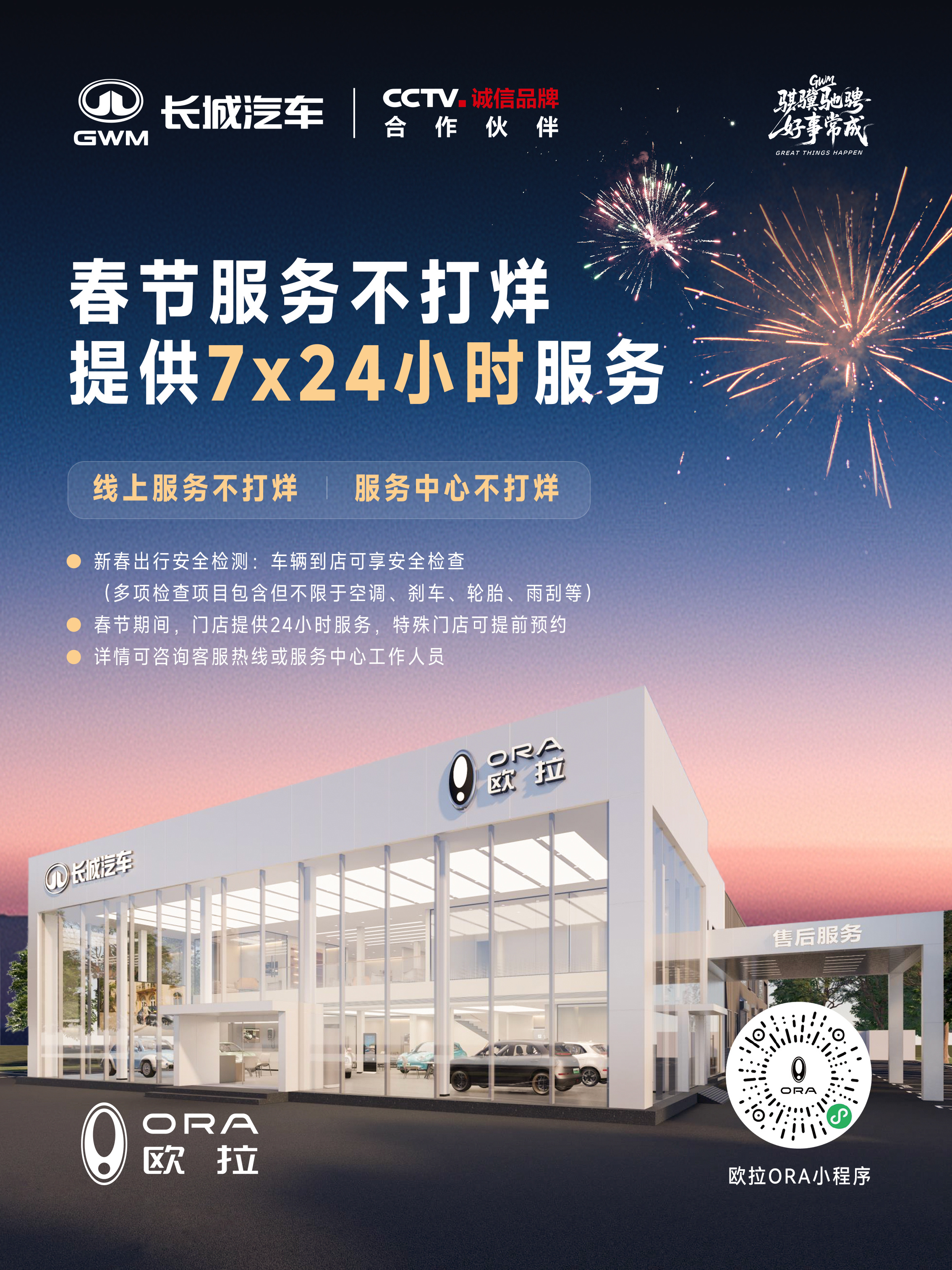 岁末的光,点亮前行的路。欧拉新春不打烊,暖心服务上线。服务常在,守护团圆安心加码,温暖同行,让春运归途有依靠。#欧拉聚微光粒粒暖人心# ​