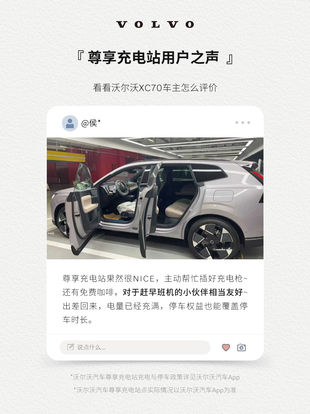 以前觉得充电是任务,现在觉得充电是享受。2025年,沃尔沃汽车尊享充电站覆盖全国5城7站,为车主提供了超2万次免费充电服务。从专人接待、专属车位,到免费充电、免费咖啡——充电不再只是补能,更是出行中的一段舒适体验。2026年,更多城市,更多尊享。 #沃尔沃汽车#