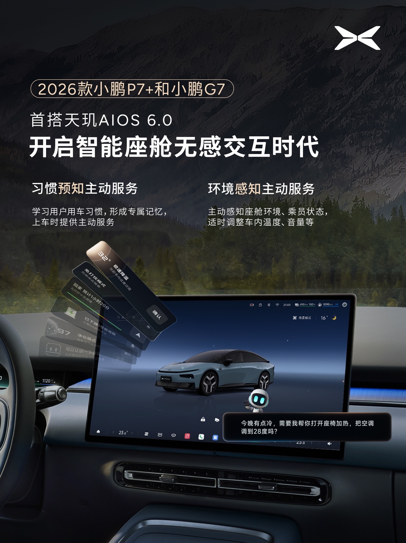 2026款小鹏P7+和小鹏G7 全球首发搭载天玑AIOS 6.0!