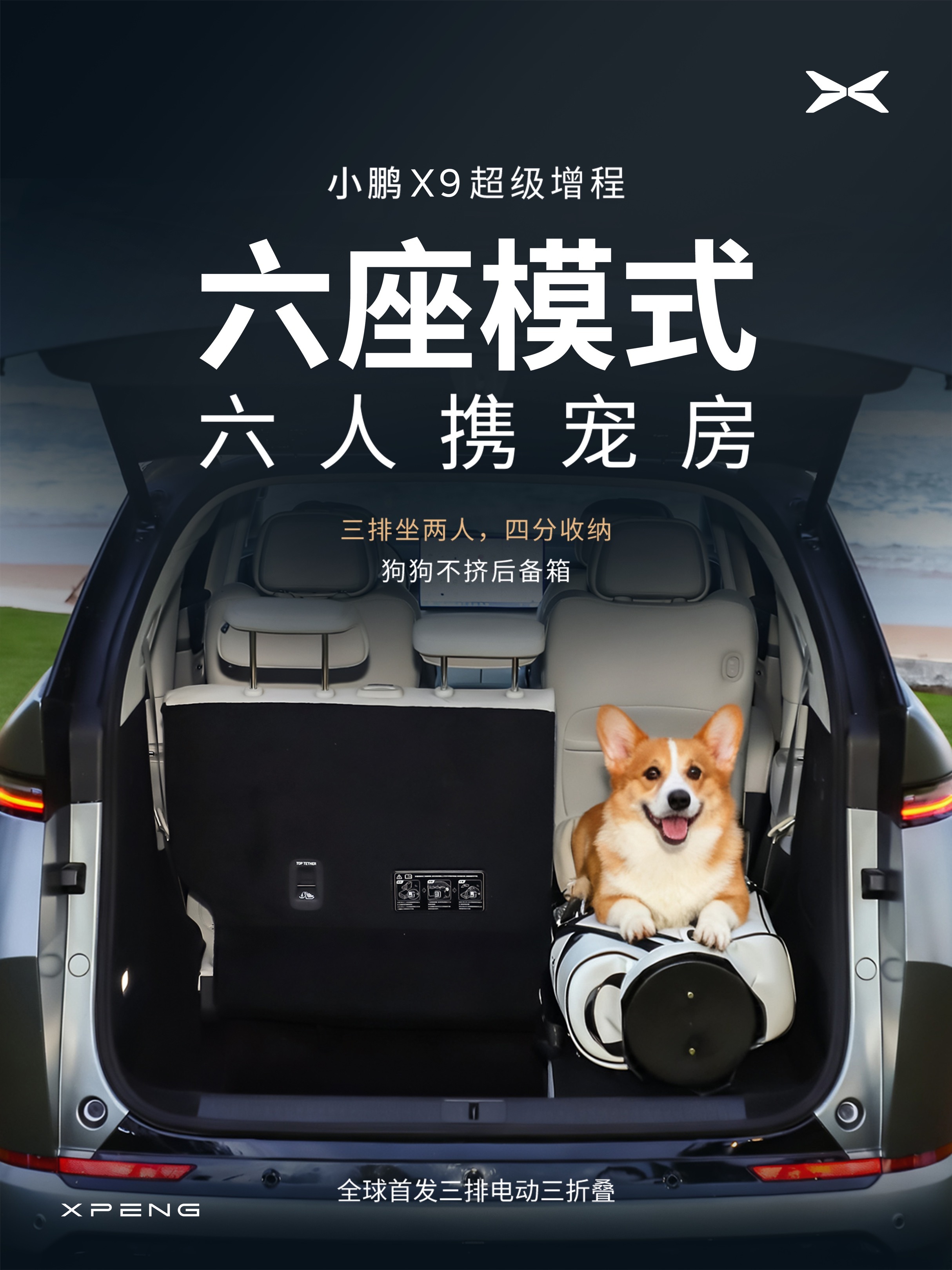小鹏X9超级增程,全球首发三排电动三折叠 空间魔术,一车搞定全场景!